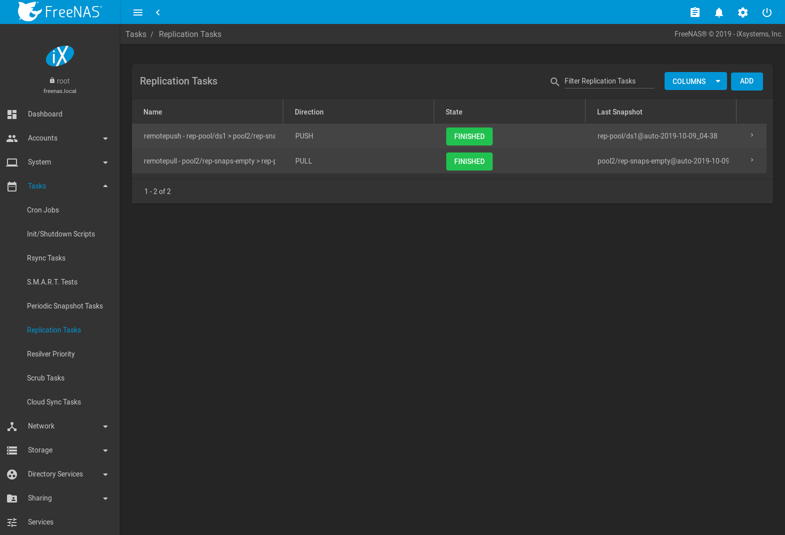 - Replication Tasks automate the replication of snapshots to a remote system